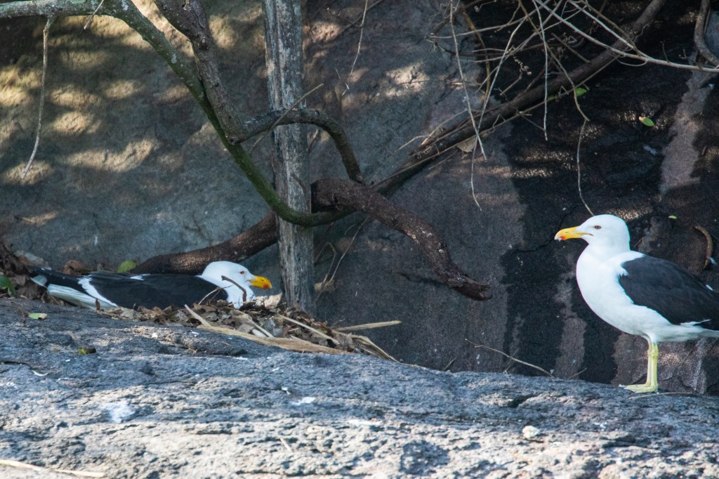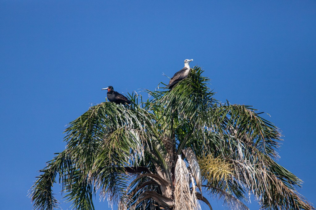 Nas duas primeiras ilhas foi registrado um grande número gaivotões (Larus dominicanus) com ninhos, outras coletando material para fazê-los, além de biguás (Nannopterum brasilianus), piru-piru (Haematopus palliatus) e fragatas (Fregata magnificens) pousadas em palmeiras na segunda ilha (fig.4).