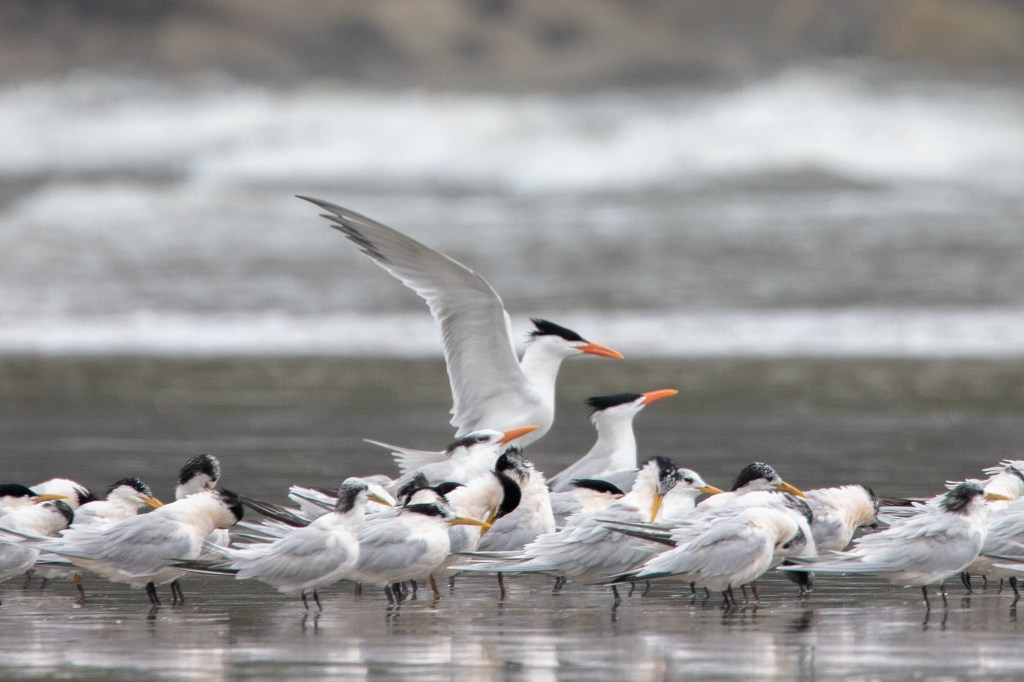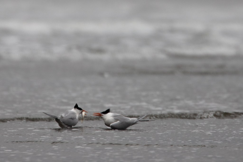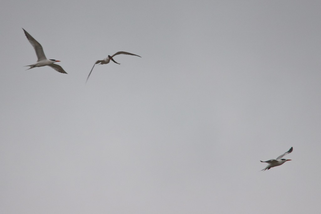 Registramos, aqui no Canto do Forte (Praia Grande, SP), alguns comportamentos dos trinta-réis-reais (Thalasseus maximus) relacionados à reprodução. A observação do comportamento é muito importante, pois esta nos auxilia na identificação desse período tão importante do ciclo de vida.