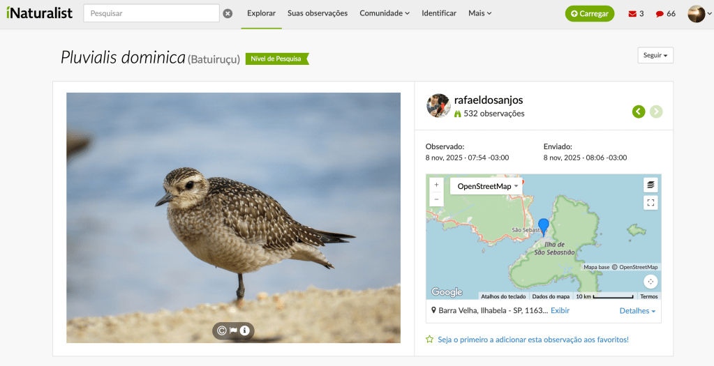 Dias depois do evento, o Estuário recebeu a visita de duas espécies de aves limícolas migratórias: maçarico-branco (Calidris alba) e batuiruçu (Pluvialis dominica), o que reforça ainda mais a área como local chave para a manutenção das espécies e rotas migratórias das aves. Abaixo estão os registros das espécies no iNaturalist: