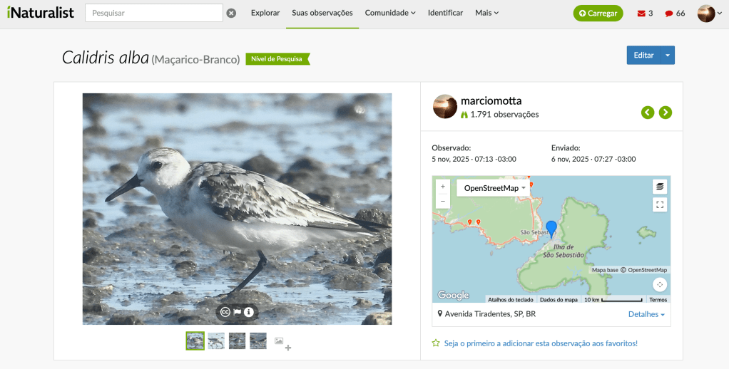 Todos os registros realizados durante o evento estão disponíveis no eBird e também no projeto SOS Mangue, no iNaturalist.