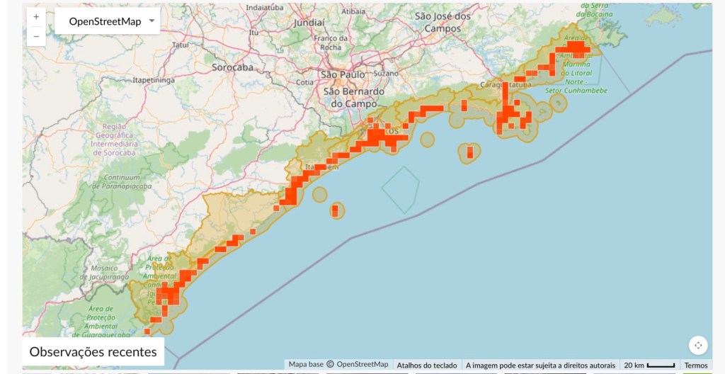 • Monitoramento temporal e espacial de populações, identificando áreas de uso frequente ao longo do litoral paulista.