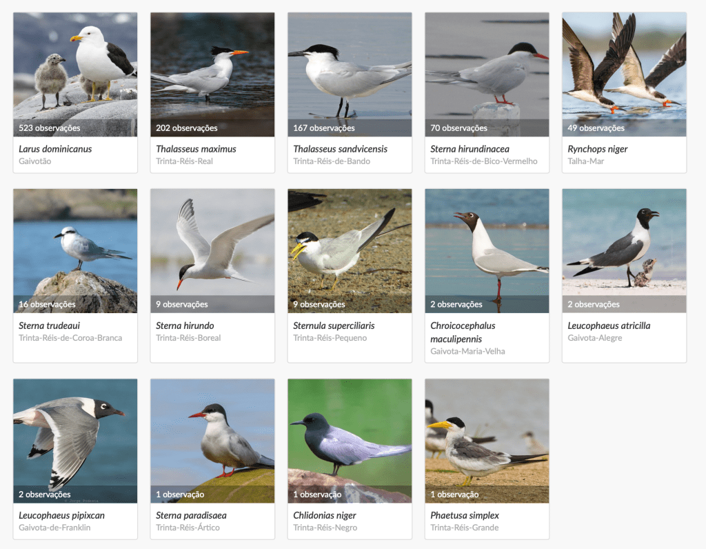 Essas informações atualmente fazem parte dos estudos que envolvem a distribuição das espécies de trinta-réis e gaivotas no litoral paulista, com foco principal nas áreas de descanso (regiões costeiras como praias, estuários e afins). Observações feitas por mais de 340 observadores e submetidas na plataforma até 10/03/2026: