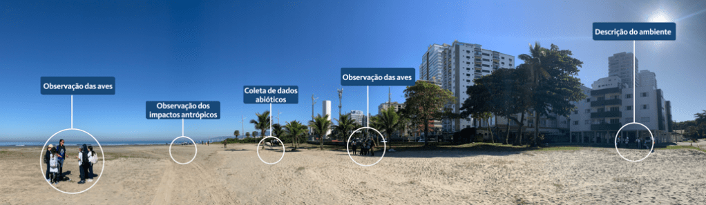 Os objetivos do projeto foram, seguindo os princípios da Cultura Oceânica (UNESCO,2020), conhecer e reconhecer a diversidade da avifauna local costeira. Eles também incluíram compreender a dinâmica desta comunidade. A partir disso, era possível pensar e atuar nas ações que alteram esta dinâmica. Cada um dos objetivos apresentou um conjunto de atividades sequenciais (rodas de conversa, pesquisa, saídas de campo, seminários, produção de guia de campo, entre outras atividades) que se relacionavam e resultaram em ações práticas conservacionistas no local.